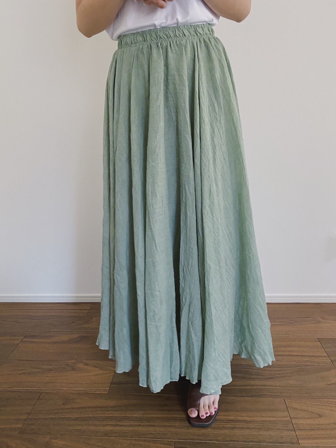 広がりすぎないフレアなデザインとリネン素材がこなれ感を演出します♡