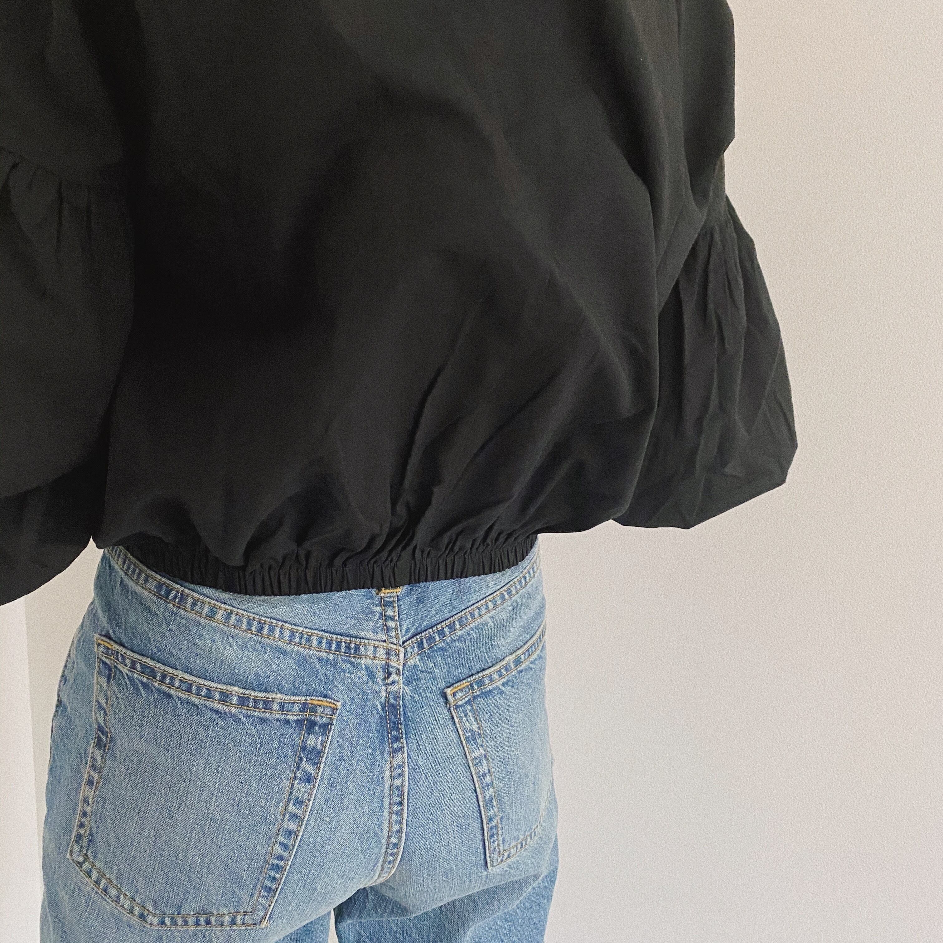 裾がゴムになっており、ウエスト位置でぴったり止まってくれるのでハイウエストボトムとの相性抜群です◎