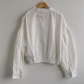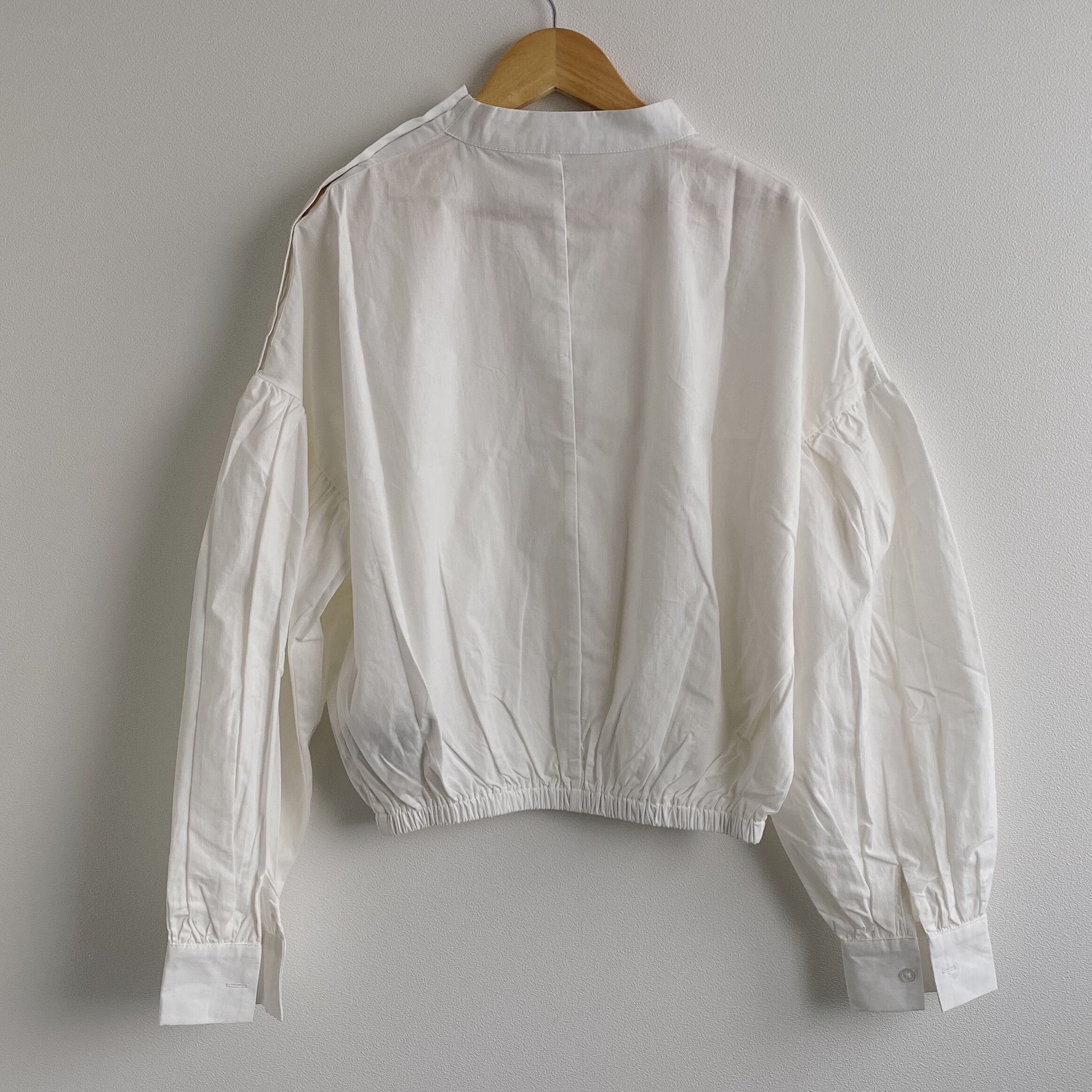 肩下のラインからふんわり膨らむショルダーが女性らしい、今季マストなデザインのスタンドカラーブラウス。