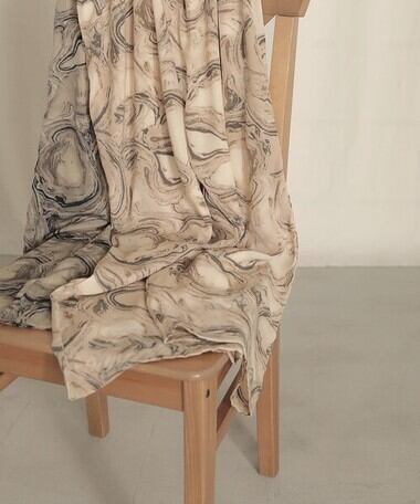 大胆なマーブルプリントでこなれ感のあるスタイルの完成。