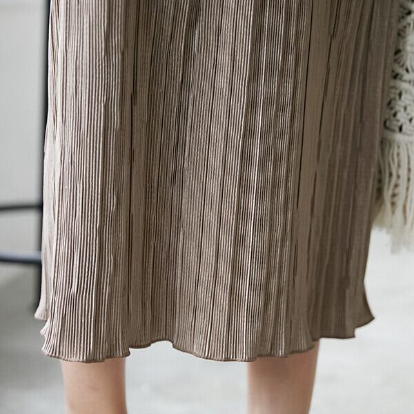 動きのあるプリーツにサテン生地によって、より大人っぽいワンピース。